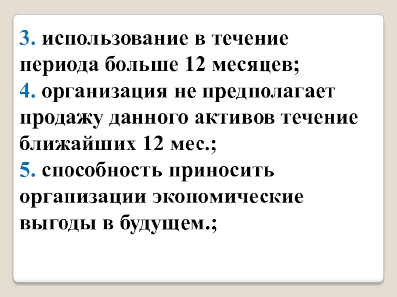 Слайд 73. использование в течение периода больше 12 месяцев;