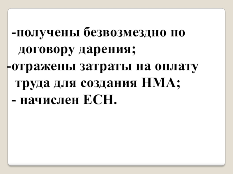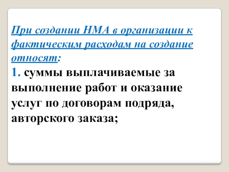 Слайд 21При создании НМА в организации к фактическим расходам на создание относят: