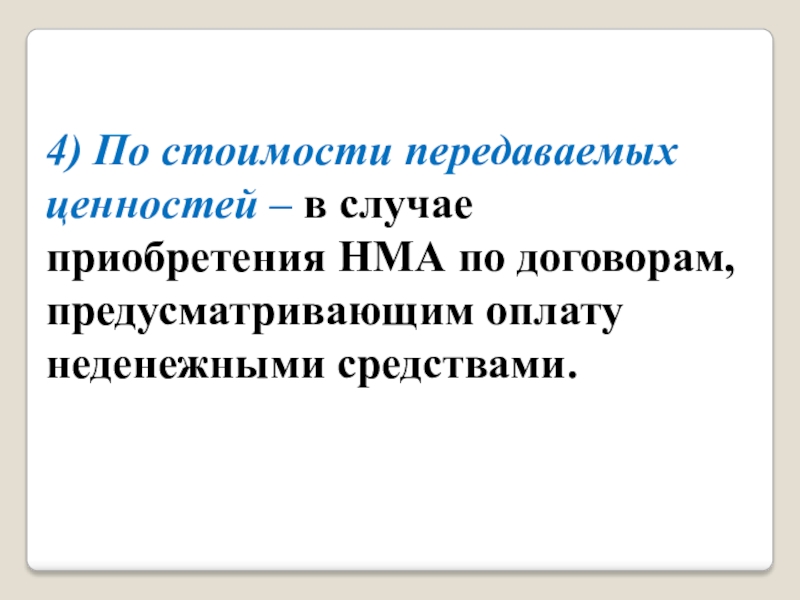 Слайд 264) По стоимости передаваемых ценностей – в случае приобретения НМА по