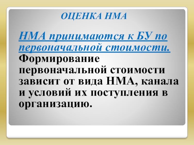 Слайд 20НМА принимаются к БУ по первоначальной стоимости. Формирование первоначальной стоимости зависит