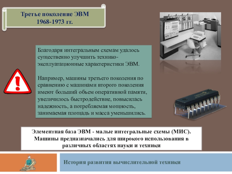 Благодаря интегральным схемам удалось существенно улучшить технико-эксплуатационные характеристики ЭВМ.