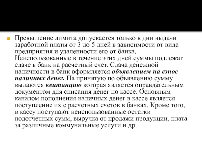Слайд 16Превышение лимита допускается только в дни выдачи заработной платы от 3