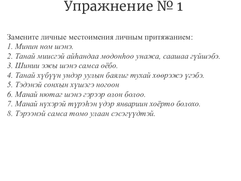 Например:Эжы намда нариихан түриитэй сабхи абаа.