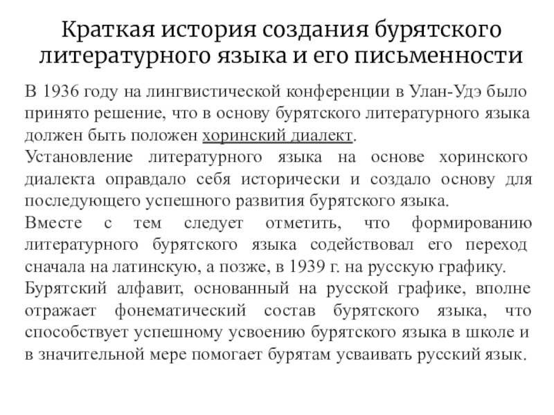 Слайд 2В 1936 году на лингвистической конференции в Улан-Удэ было принято решение,