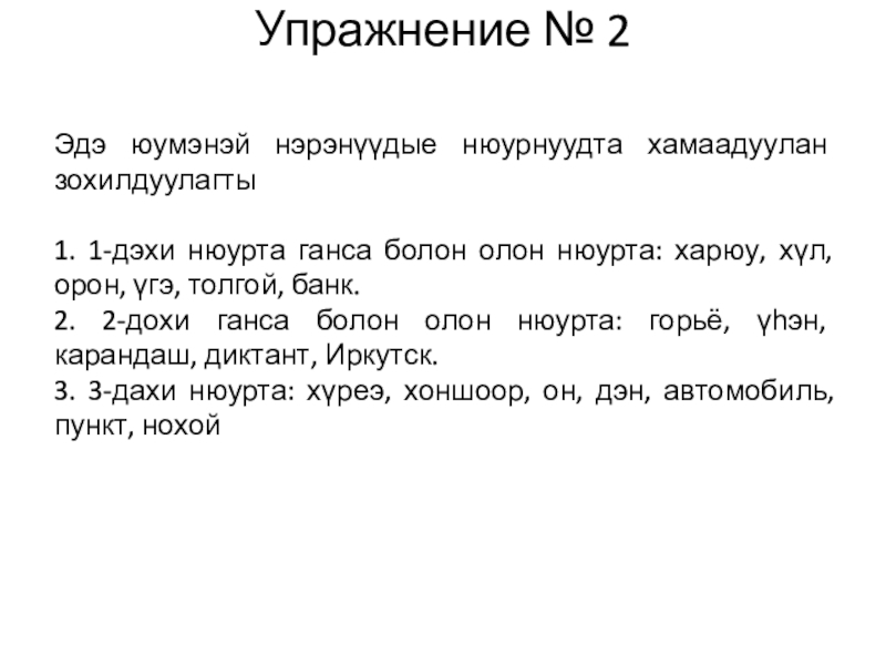2. 2-дохи ганса болон олон нюурта: горьё, үһэн, карандаш, диктант, Иркутск.