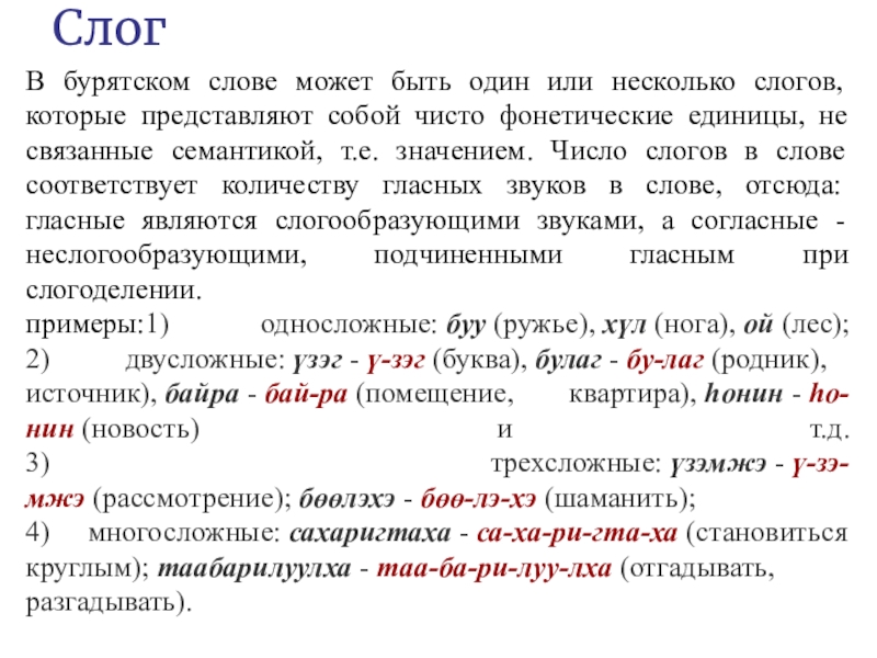 В бурятском слове может быть один или несколько слогов, которые представляют
