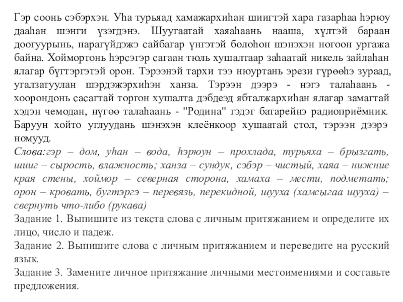 Слайд 23Гэр соонь сэбэрхэн. Уһа турьяад хамажархиһан шиигтэй хара газарһаа һэрюу дааһан