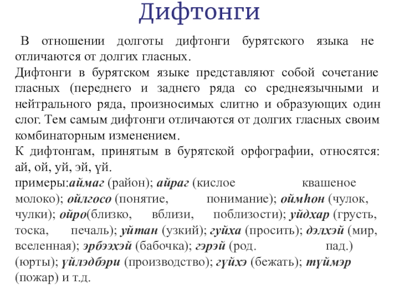 В отношении долготы дифтонги бурятского языка не отличаются от долгих