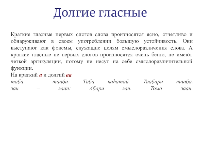 От краткости и долготы гласных в бурятском языке зависит смысл слов.
