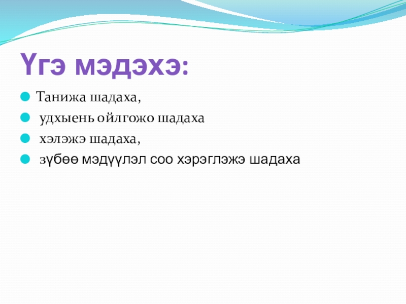 Үгэ мэдээгүй һаа, юушье мэдэхэгүйш.