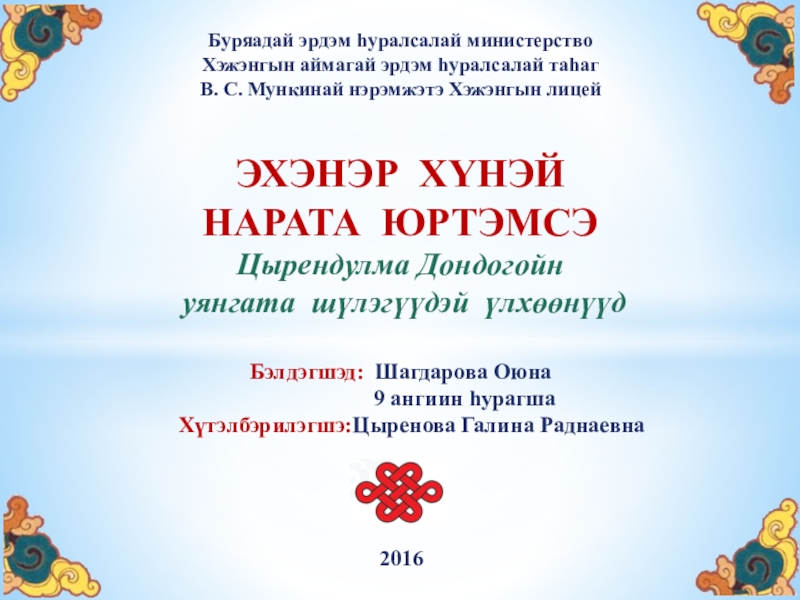 Хүтэлбэрилэгшэ:Цыренова Галина Раднаевна