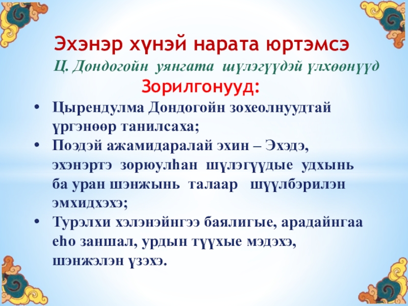 Ц. Дондогойн уянгата шүлэгүүдэй үлхөөнүүд