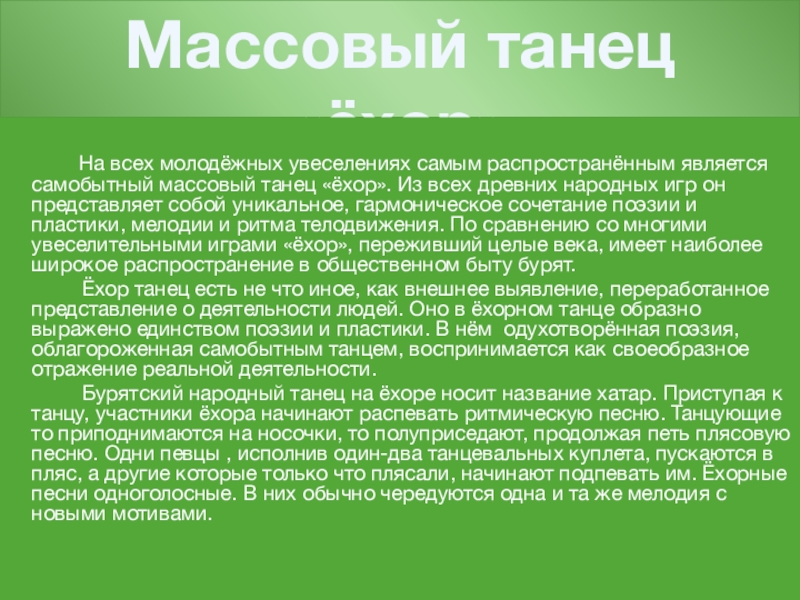 Тема работы: Массовый танец ёхор.