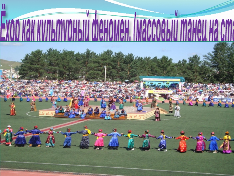 Слайд 13Ёхор как культурный феномен. (массовый танец на стадионе)