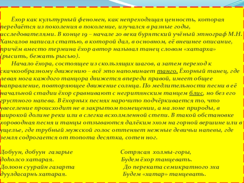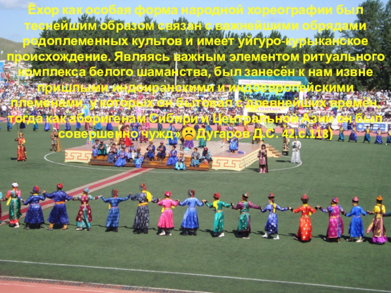 Слайд 27Ёхор как особая форма народной хореографии был теснейшим образом связан с