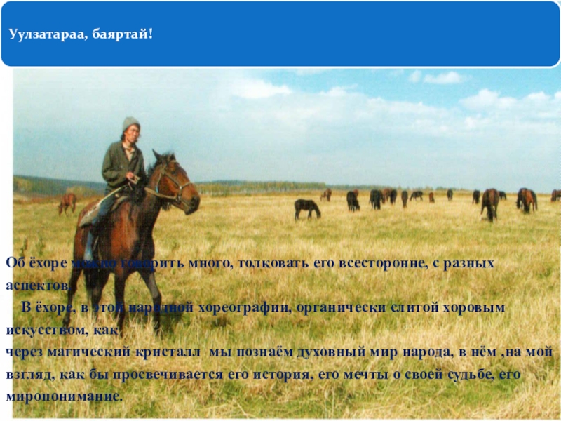 Слайд 17Ёхор – это сочетание поэзии и пластики, мелодии и ритма телодвижения.