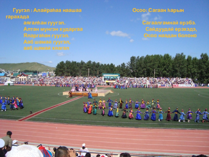….. « Басаганай наадан» – затевался родителями (родственниками) в честь дочери, выходящей замуж».