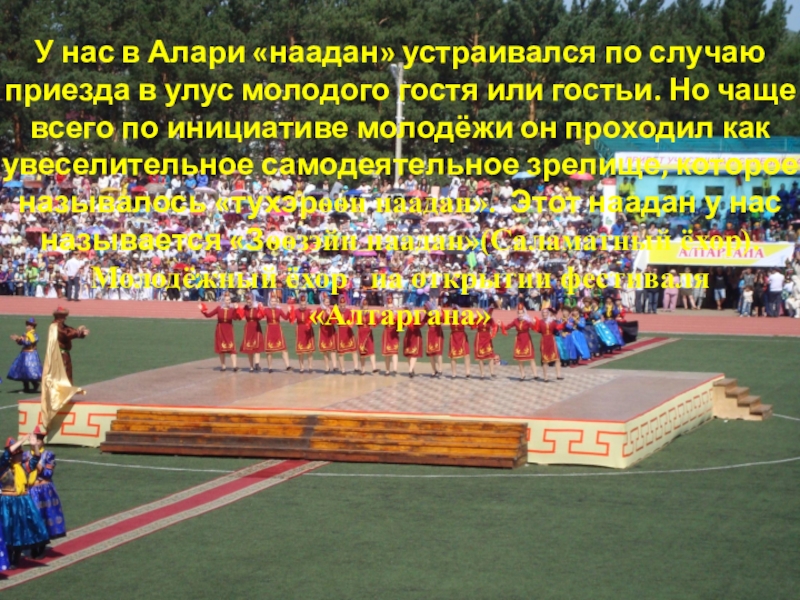 Слайд 21У нас в Алари «наадан» устраивался по случаю приезда в улус