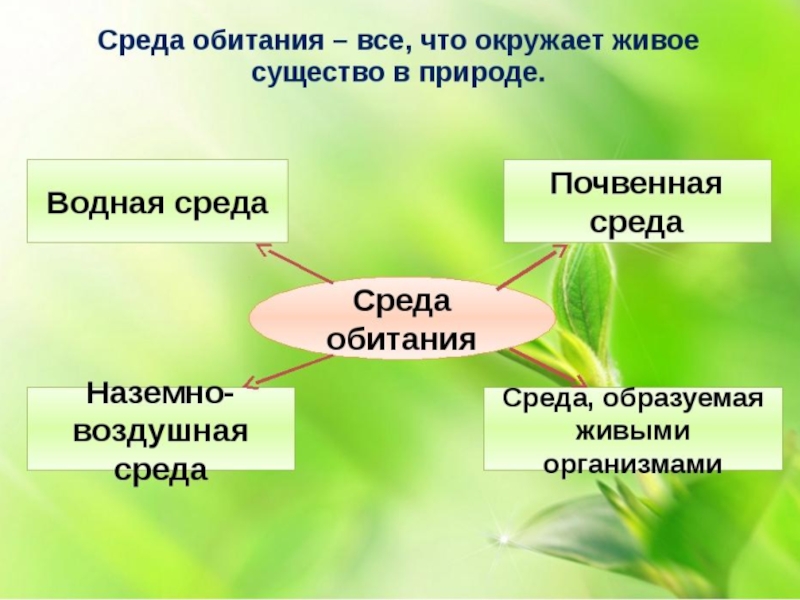 Среда обитания – окружающая среда, обусловленная совокупностью факторов (физических, химических, биологических, информационных, социальных), способных оказывать прямое или косвенное немедленное или отдалённое воздействие на жизнедеятельность человека, его здоровье и потомство
