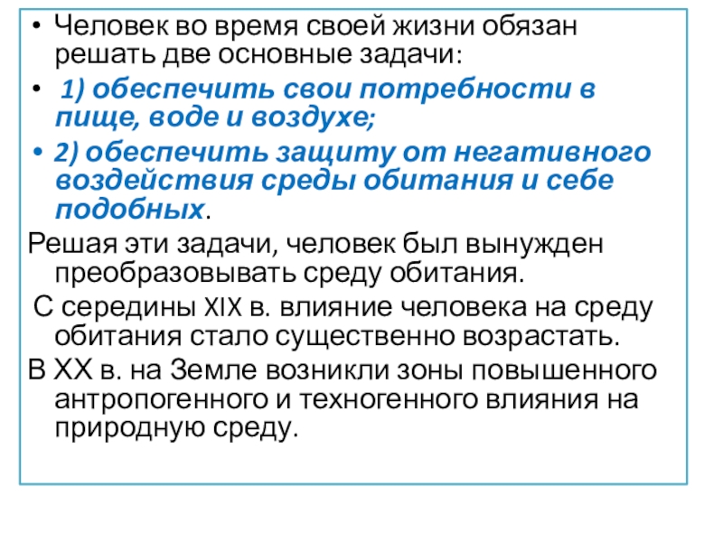 Решая эти задачи, человек был вынужден преобразовывать среду обитания.