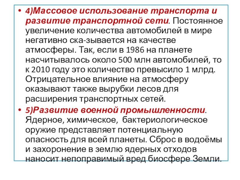 Слайд 294)Массовое использование транспорта и развитие транспортной сети. Постоянное увеличение количества автомобилей