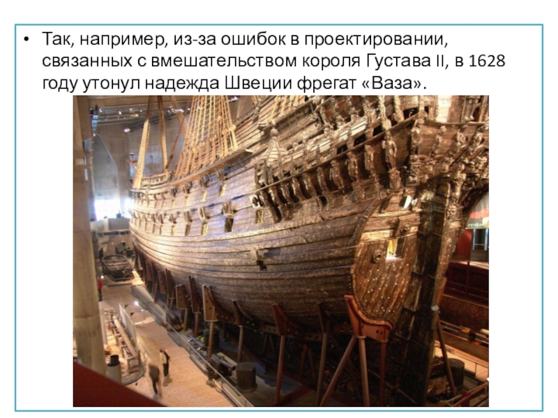 Слайд 33Так, например, из-за ошибок в проектировании, связанных с вмешательством короля Густава