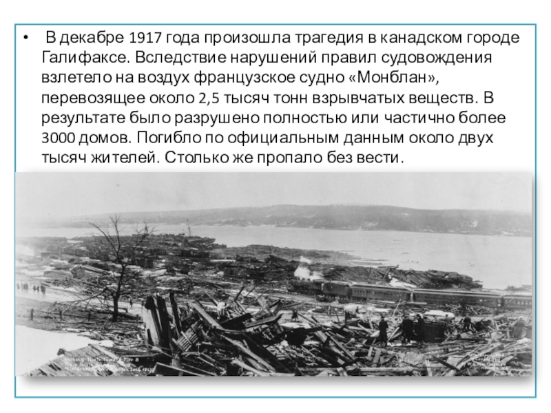Слайд 35 В декабре 1917 года произошла трагедия в канадском городе Галифаксе.