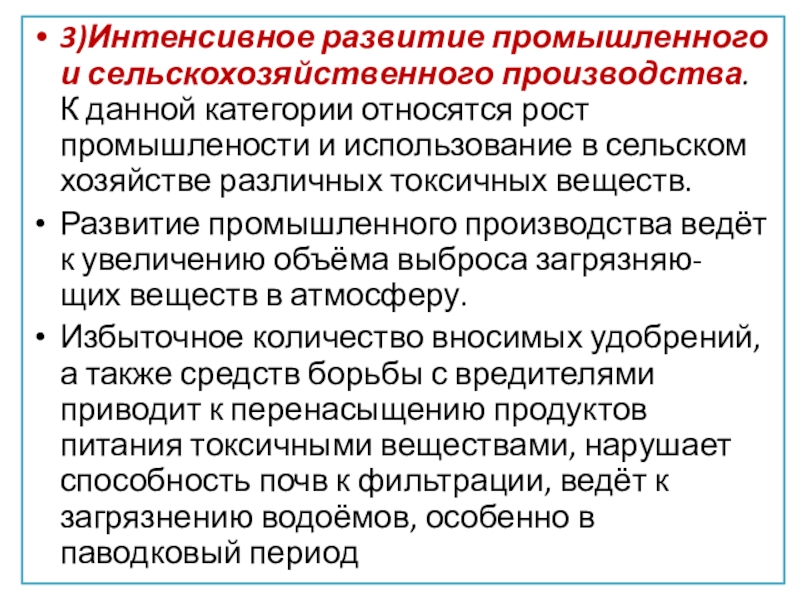 Слайд 283)Интенсивное развитие промышленного и сельскохозяйственного производства. К данной категории относятся рост