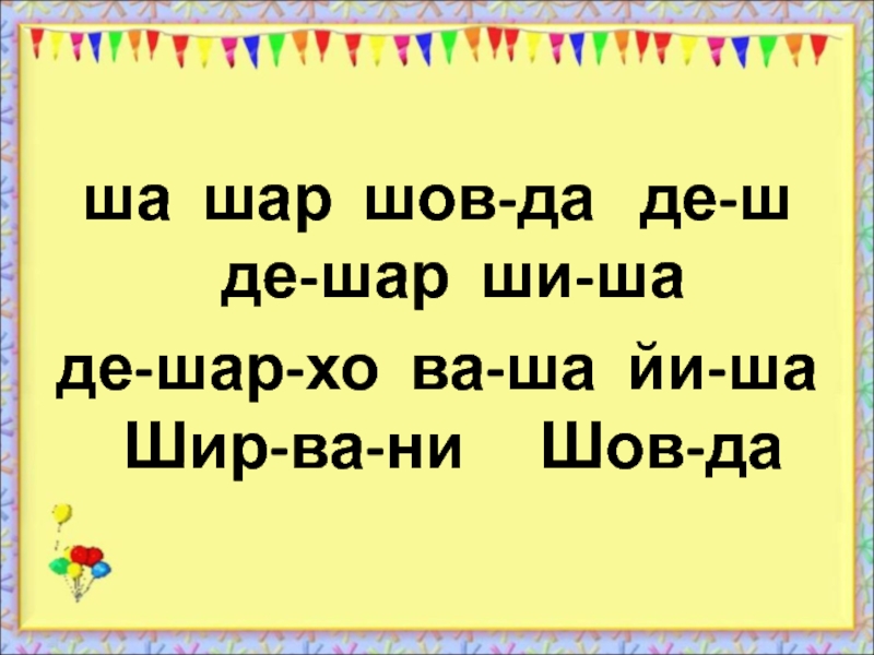 Слайд 16ша шар шов-да де-ш де-шар ши-ша