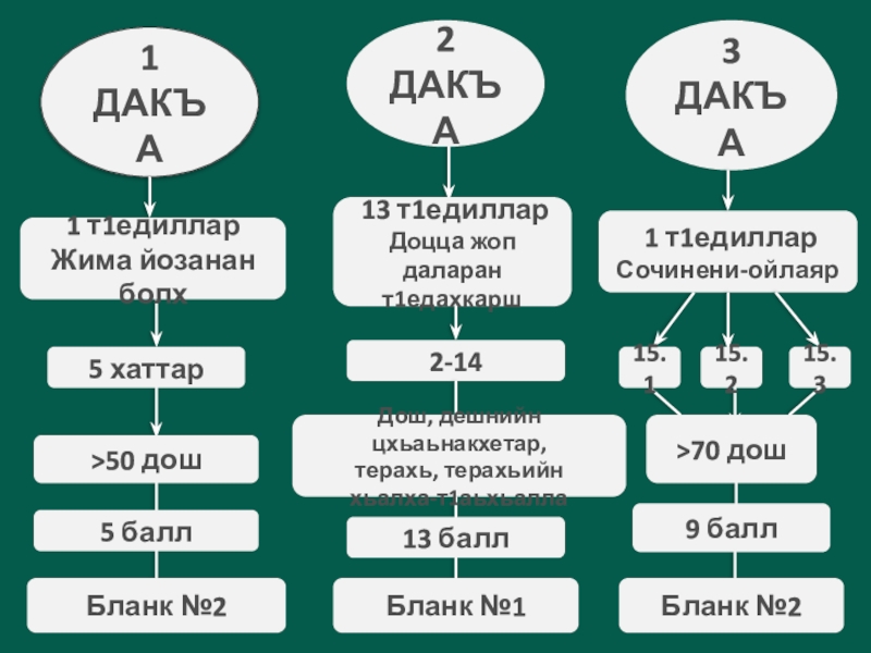 3-чу декъан болх болош, далийначу кхаа т1едилларх (15.1, 15.2 я 15.3) цхьаъ хоржу, цунна кхоччуш (аргументированни) дуьззина йозанан жоп а луш.