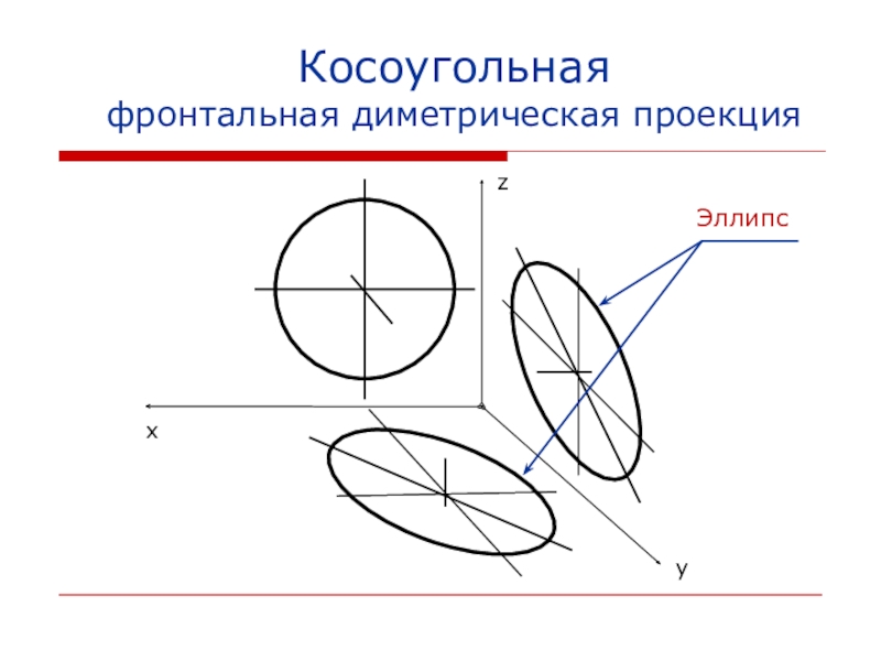 Косоугольная  фронтальная диметрическая проекцияzxyЭллипс
