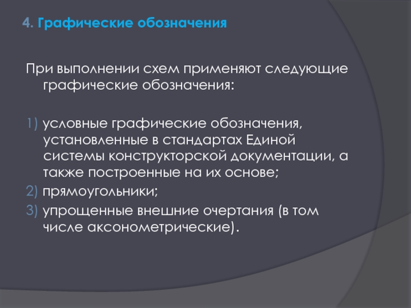 графические обозначения, установленные в стандартах Единой системы конструкторской документации, а также построенные на их основе;