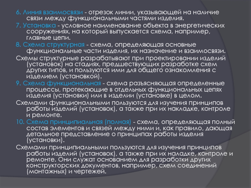 9. Схема функциональная - схема разъясняющая определенные процессы, протекающие в отдельных функциональных цепях изделия (установки) или в изделии (установке) в целом.