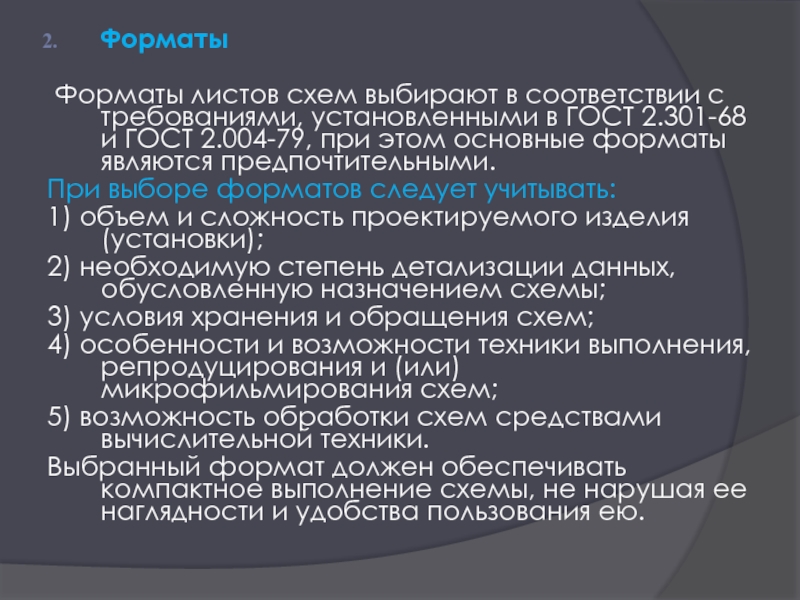 Выбранный формат должен обеспечивать компактное выполнение схемы, не нарушая ее наглядности и удобства пользования ею.
