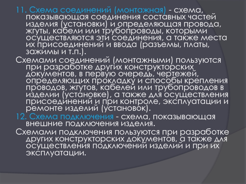 Слайд 2011. Схема соединений (монтажная) - схема, показывающая соединения составных частей изделия