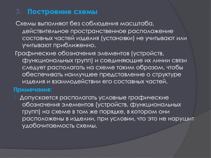 1. Допускается располагать условные графические обозначения элементов (устройств, функциональных групп) на схеме в том же порядке, в котором они расположены в изделии, при условии, что это не нарушит удобочитаемость схемы.