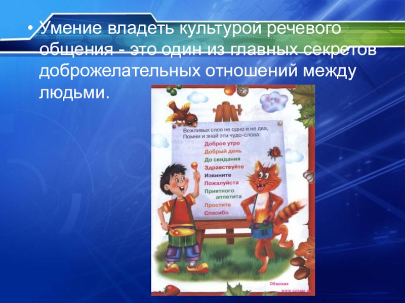 Умение владеть культурой речевого общения - это один из главных секретов доброжелательных отношений между людьми.