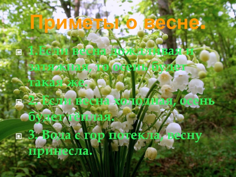 Приметы о весне. 1.Если весна дождливая и затяжная, то осень будет такая же.2. Если весна холодная, осень