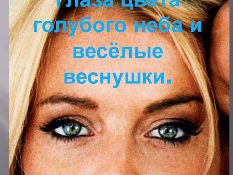 Слайд 3Глаза цвета голубого неба и весёлые веснушки.