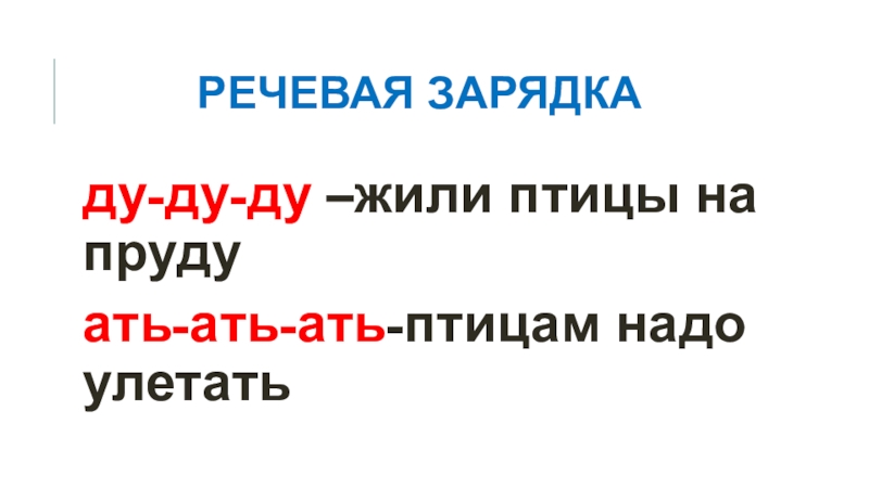 Речевая зарядкаду-ду-ду –жили птицы на прудуать-ать-ать-птицам надо улетать