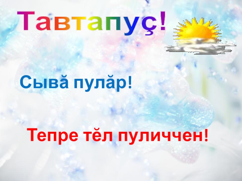 Сывă пулăр!Тавтапуç!Тепре тĕл пуличчен!