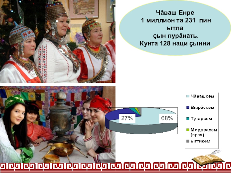 Чăваш Енре 1 миллион та 231 пин ытла çын пурăнать. Кунта 128 наци çынни68%27%