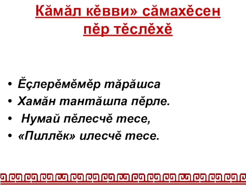 Кăмăл кěвви» сăмахěсен пěр тěслěхěĔçлерěмěмěр тăрăшсаХамăн тантăшпа пěрле. Нумай пěлесчě тесе,«Пиллěк» илесчě тесе.
