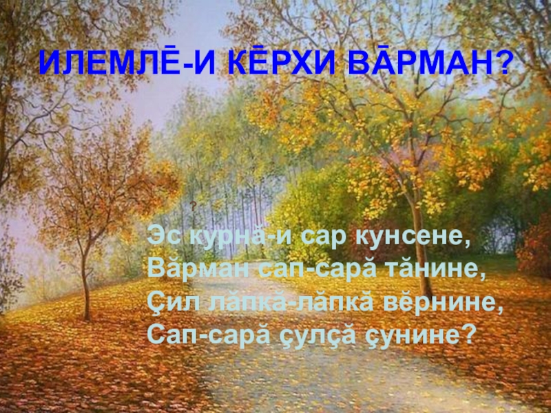 ИЛЕМЛĒ-И КĒРХИ ВĀРМАН?
