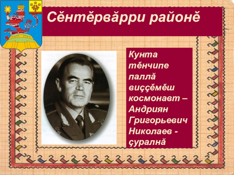 Сěнтěрвăрри районěКунта тěнчипе паллă виççěмěш космонавт – Андриян Григорьевич Николаев - çуралнă