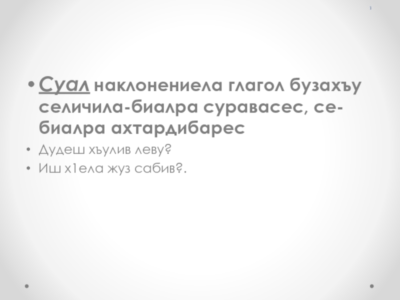 1Суал наклонениела глагол бузахъу селичила-биалра суравасес, се-биалра ахтардибаресДудеш хъулив леву?Иш х1ела жуз сабив?.