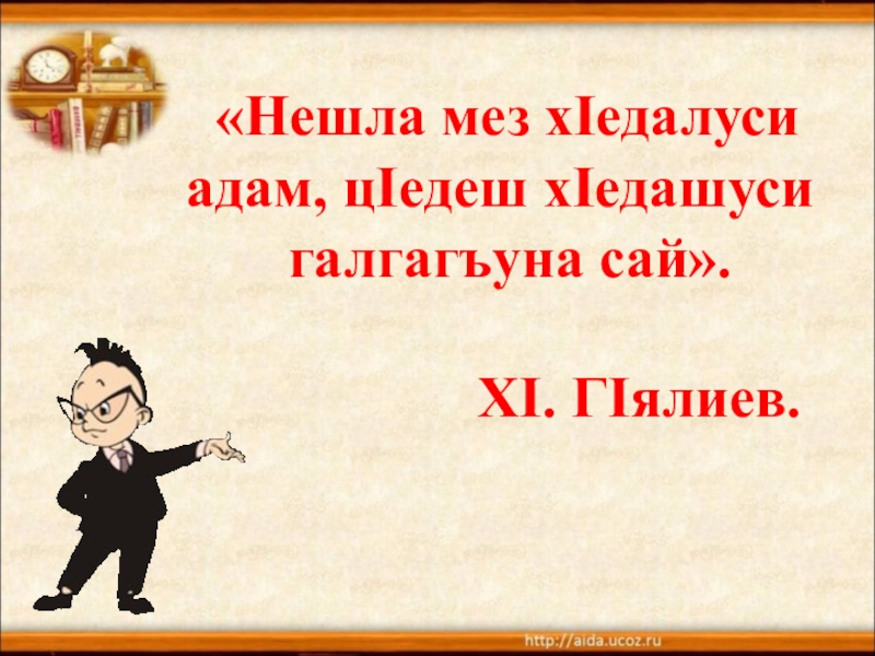 «Нешла мез хIедалуси адам, цIедеш хIедашуси галгагъуна сай».