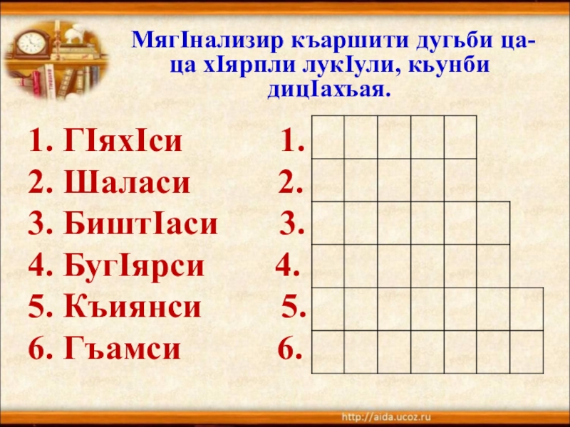 Дугьбала   диктанттIумакIуркIуркъазгIярачIичIалакьялгъяйхьунулпIалтIуцIагьаяхIулахъяр