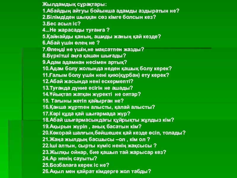 Бес нәрсеге асық бол,