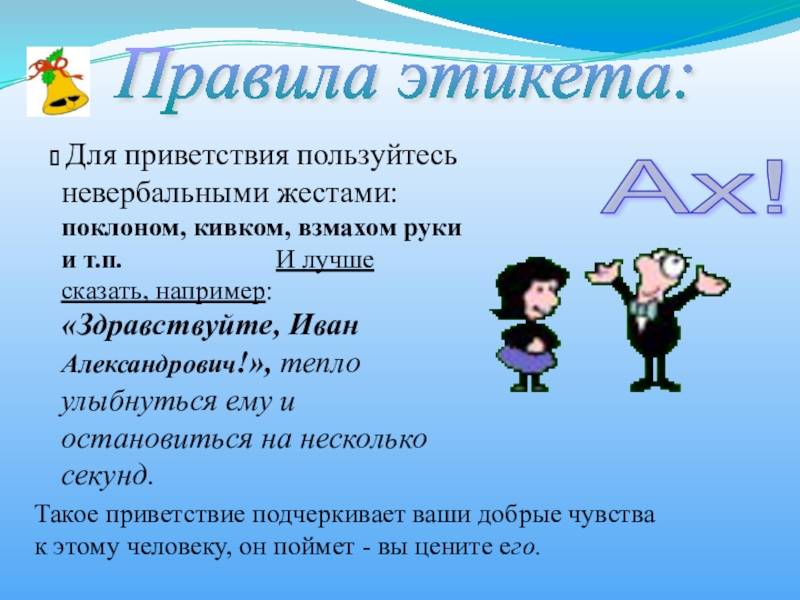 Такое приветствие подчеркивает ваши добрые чувства к этому человеку, он поймет - вы цените его.